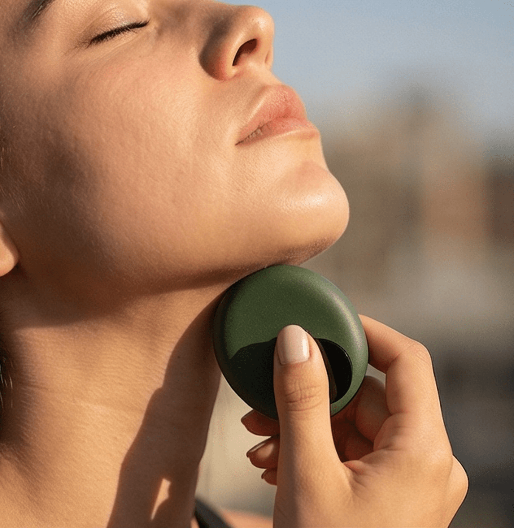 Sense Stone is a concept that centres on a small tactile device, configured via a conversational AI app, that adapts to the user's mood, environment, and time of day. Once calibrated, it guides mindful breathing through subtle haptic feedback and gentle expansion. Designed to support emotional regulation for Gen Z users, without adding screen time.